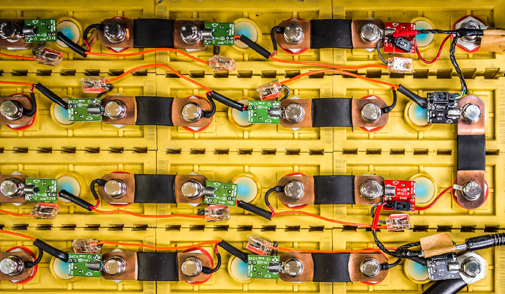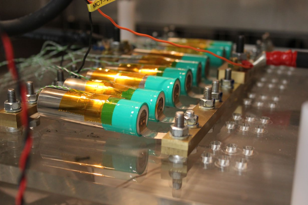 03 柱状电池充放电测量 ▲ 8支并排的18650电池组用于测试