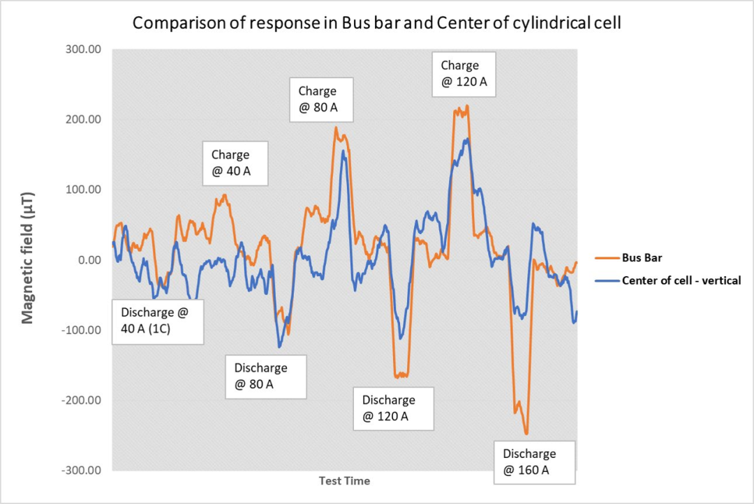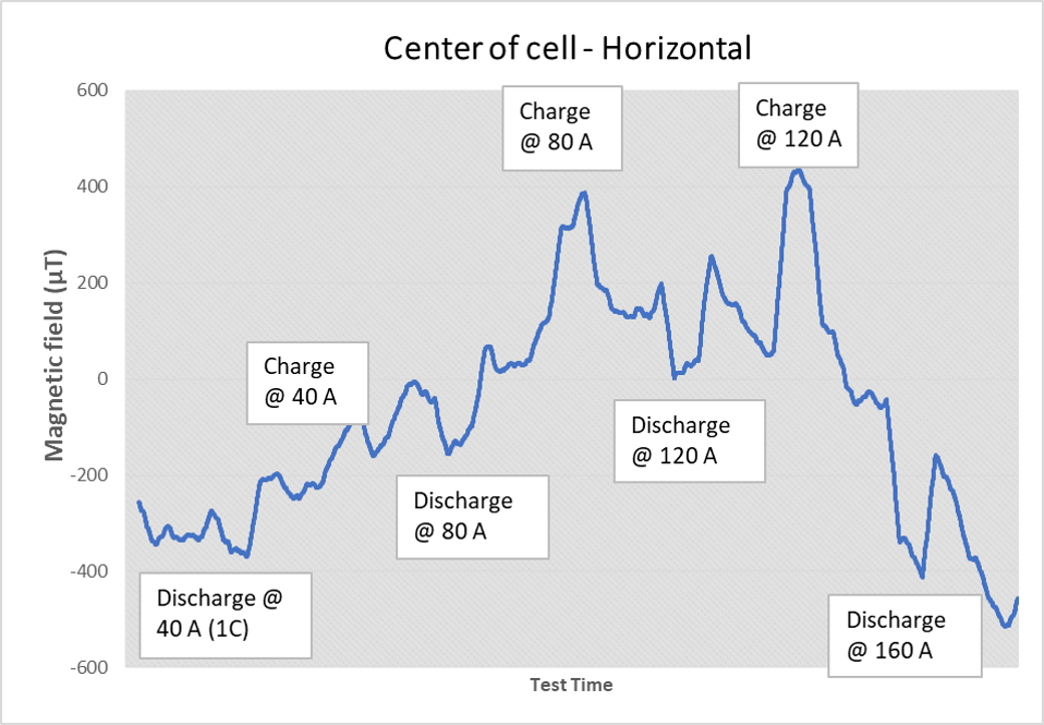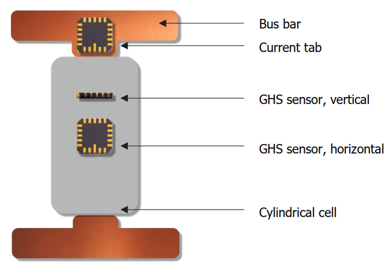 电池测试与监控GHS优势 • 非接触/隔离/非破坏电流传感 • 测试无需断电,对电池充放电循环无影响 • 传感器可放置于任何载流件上,在BMS中集成更简单 • 补充现有的测试方案,无需重新搭建电路或实验装置 • 无串扰,降低了屏蔽要求,可高密度集成获得高空间分辨率 • 测量范围宽(mA至10kA) • 传感器不会过饱和,有更好的准确度 • 能测量>30T的磁场,且输出无滞后 • 能捕捉大电流峰值,且不会损坏传感器或影响校准 • 更快的发现问题,更换传感器无需停机 ▲ (左)GHS探头插入母线馈电电池组的支架上 (中)GHS探头贴于软包电池上测量电流密度分布图 (右)GHS探头贴于圆柱形电池上 • 捕捉电流方向及电流大小 • 当电流流向反向时,输出信号反向 • 测量和区分充电与放电 • 绘制通过电池的电流路径 • 替代传统的温度测量方案 • 捕捉瞬时增加的电流密度,高分辨率数据测量 • 响应无延迟,比测量温度反演电流密度/电阻率的方案更快