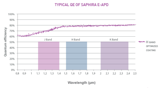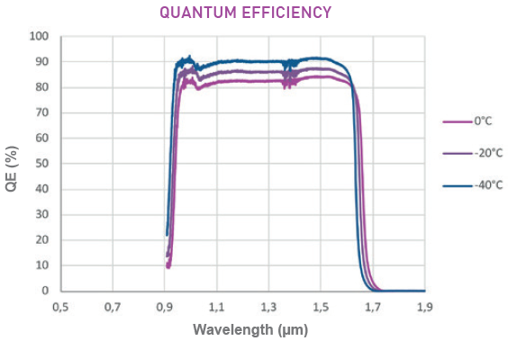一机实现1~2.5um全谱段覆盖、大于70%量子效率,选配H/K波段增透镀膜选项,进一步降低客户集成繁琐度;