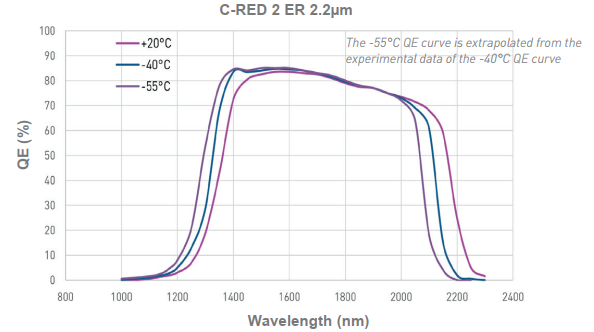 C-RED 2 ER 2.2um量子效率及温度关系图