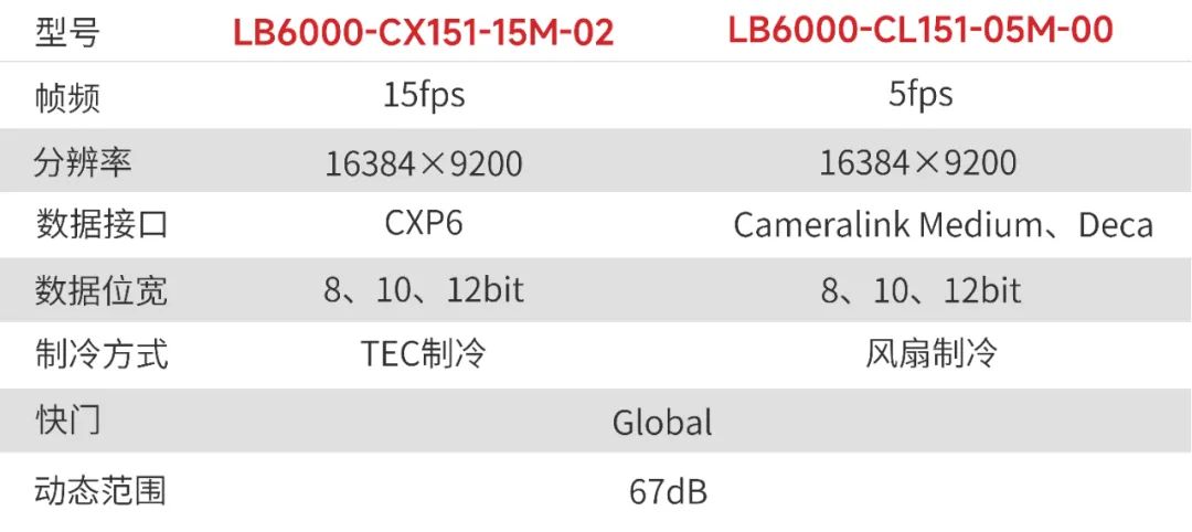 凌云光自研1.5 亿像素大面阵相机,搭载 Global 芯片,具备领先的全局快门,可轻松拍摄运动场景。通过 8、10、12 位高宽带传输和多种数据接口 CXP6、CameraLink,实现满分辨率最大 15fps,有效提升检测效率,为屏幕检测而生。
