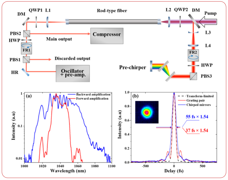 2021年中科院物理所利用大模场光子晶体光纤棒(rod-type PCF),以预啁啾管理放大和双通放大技术,实现了55fs,100W的超快激光输出【6】。