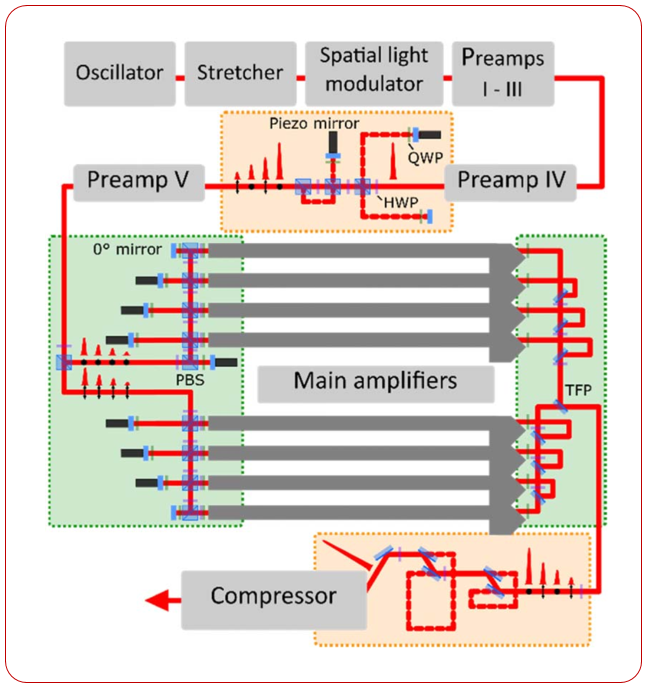 图10. 多路空间相干合成与分脉冲放大装置