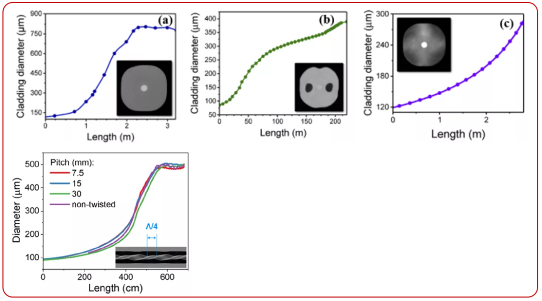 2021年芬兰Tampere大学Valery Filippov教授课题组报道了旋转型锥形光纤(ST-DCF),讨论了其与保偏/非保偏锥形光纤的偏振特性,以及不同旋转螺距ST-DCF的输出光特性,也为未来更复杂波导结构锥形光纤的应用提供了重要的参考数据【10-11】。