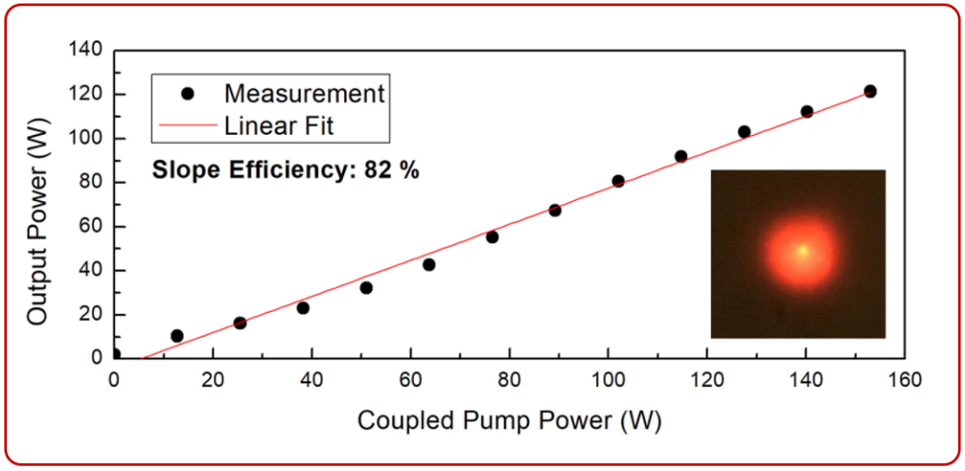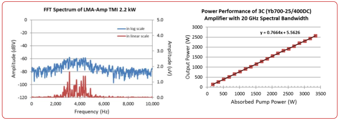 3C光纤用于超短脉冲放大的同时,也可用于窄线宽连续光的功率放大,利用其稳定单模输出以及对非线性效应不敏感的特点,实现单色性更好、光束质量更好,高功率更高的连续光输出,用于如引力波探测、多光束合成等方面的研究。