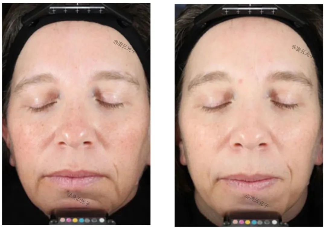 在治疗前和最终治疗后3个月,使用专业的数字成像系统和标准化的头部固定器拍摄每位受试者的全脸数字图像,以保持正确的头部定位。为了确保在预处理和处理后成像过程中头部定位的可重复性,成像系统将先前图像的数字重影与头部位置的实时电影显示结合在一起,以实现预处理和处理后数字图像之间定位的最大一致性。将视频图像与静态虚影图像进行匹配,实现预处理定位与后处理定位的匹配。在治疗前和治疗后3个月,每名受试者取3个面部位置,包括正面、左侧面部45°和右侧面部45°。治疗效果由三位盲审医师评估者比较治疗前和治疗后3个月的随机图像对进行评估,评估者将尝试识别出治疗前的图像,然后评估治疗后3个月图像的改善水平,如果有的话。盲审医师评估者使用从0到10的11分量表对光损伤的总体改善进行评分,其中0分对应于没有改善,1分代表光损伤改善10%,5分代表改善50%,10分对应于100%,或皮肤光损伤完全改善。错误地识别处理后的图像作为预处理图像,将导致负得分,例如分数为4将被记录为- 4分,或光损伤外观恶化40%。