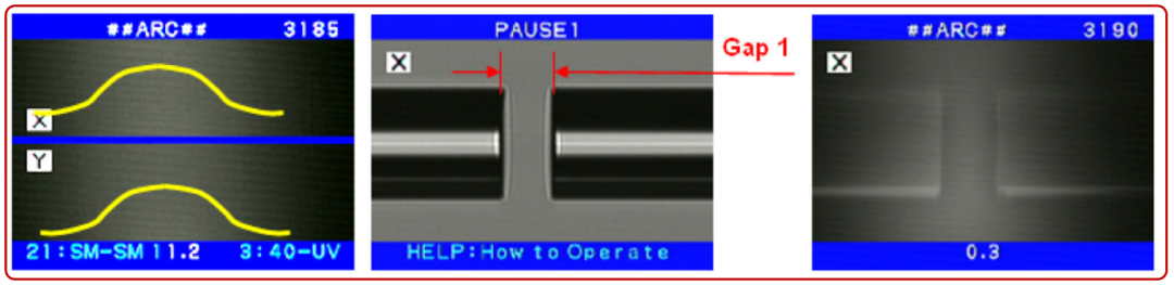 1.测量电弧中心 2.测量光纤端面棱角间隔 3.低功率电弧加热结束