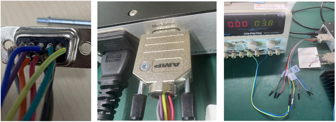 用户可参照上述针脚定义,根据需要自己制作一个9pin接头,用不到的针脚可以空置不接线(注意接头上的针脚数字要和Modulation接口对应),如下图所示: