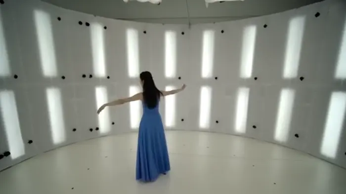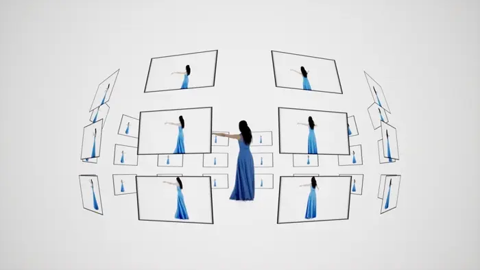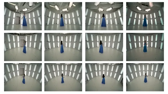节目中,演员刘浩存与5位亚毫米级高精度数字分身同台共舞、跨时空互动,在诗意化的舞台空间中完美诠释歌曲情感内核。依托360°高密度多视角同步采集与光场信息建模,系统精准还原演员肢体动态、发丝纹理与微表情细节,实现真人与数字分身的无缝同框、自然穿行与流畅互动,让“梦境与现实交织”的艺术构想得以落地。