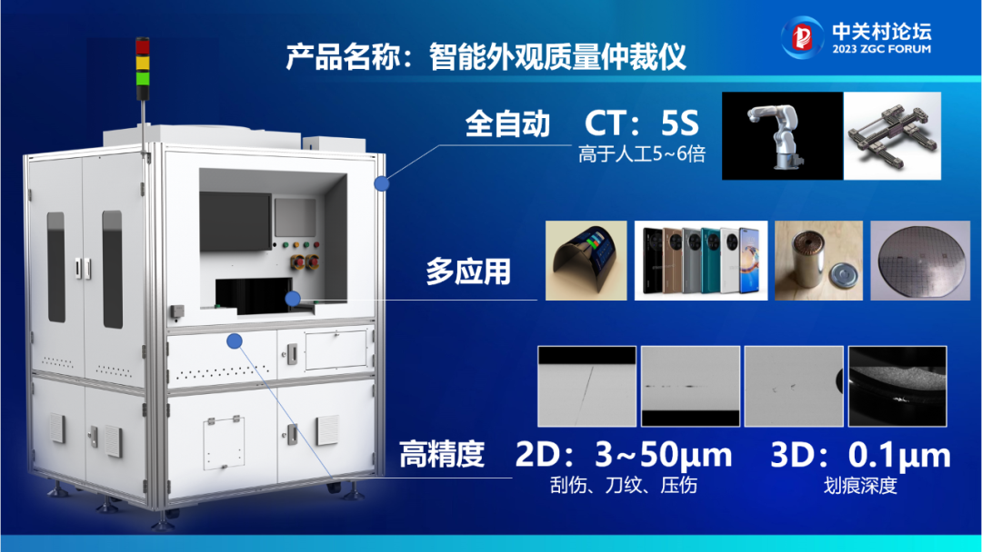 在本次论坛上,凌云光CTO赵严博士发表了题为《面向精密制造的高精度外观检测系统与方案》的主题演讲,向与会者分享了视觉+AI技术在精密制造行业应用的成功经验,并发布了可在3C电子、新型显示、锂电池以及半导体晶圆等多个行业应用的智能外观质量仲裁仪。