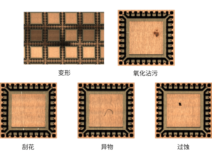 在半导体后道封测工艺中,引线框架作为芯片的载体“骨架”和电气连接桥梁,其质量直接影响封装的可靠性与良率。任何微小的氧化、变形、刮花、变色、过蚀等缺陷都可能导致封装失败或器件早期失效,引线框架视觉检测实现100%全检成为行业必然需求。然而,要实现全面、精准的机器视觉检测应用,面临三大核心挑战: