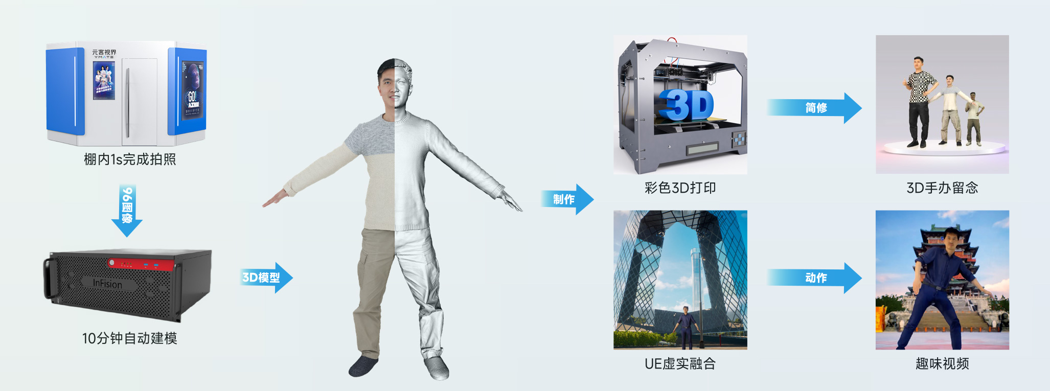 | 几何精度 | 2mm | 准确体现人体五官、服装褶皱等,面数≥10万 |