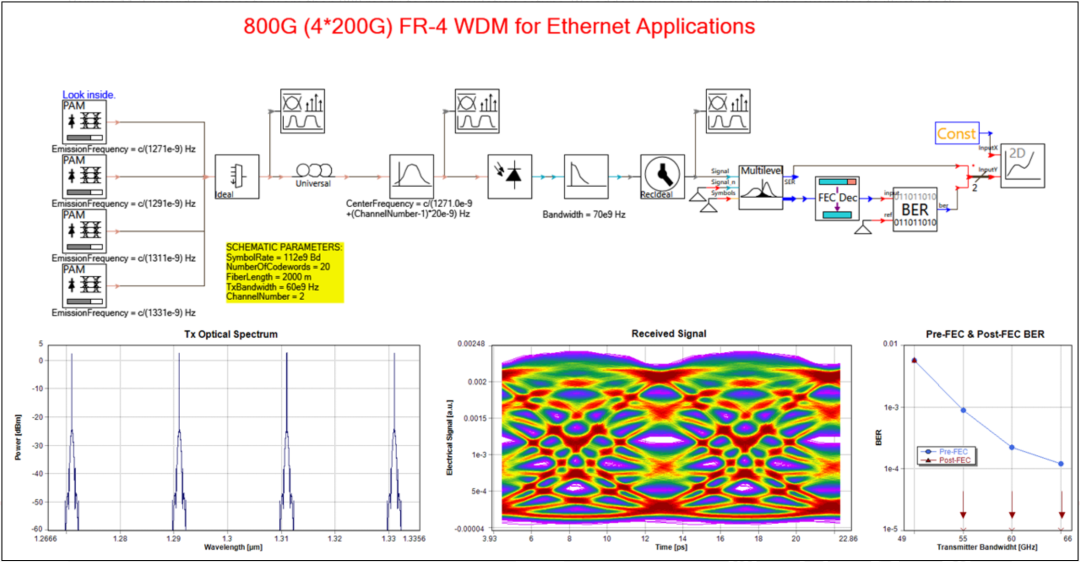 800G(4*200G)数据中心系统传输仿真